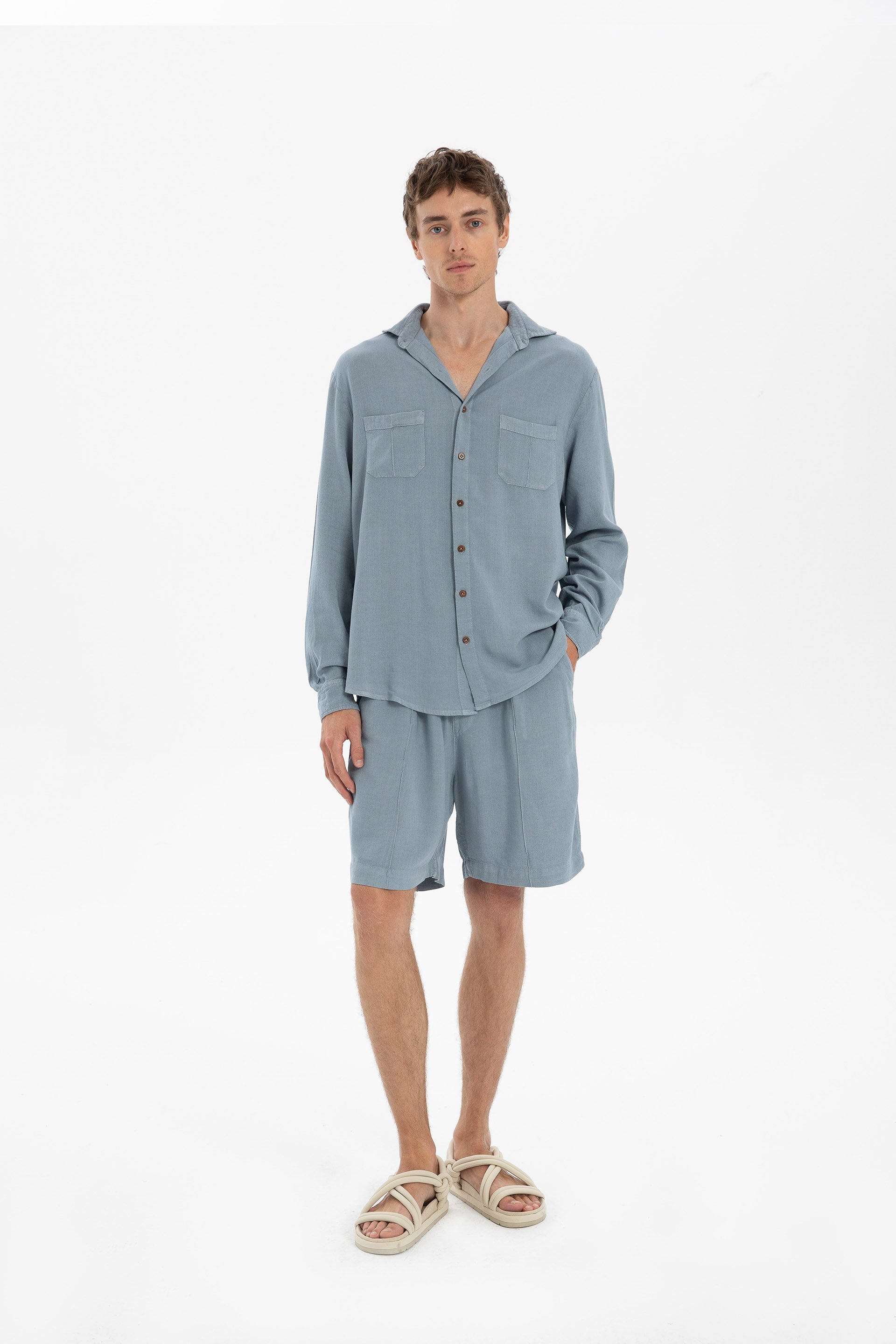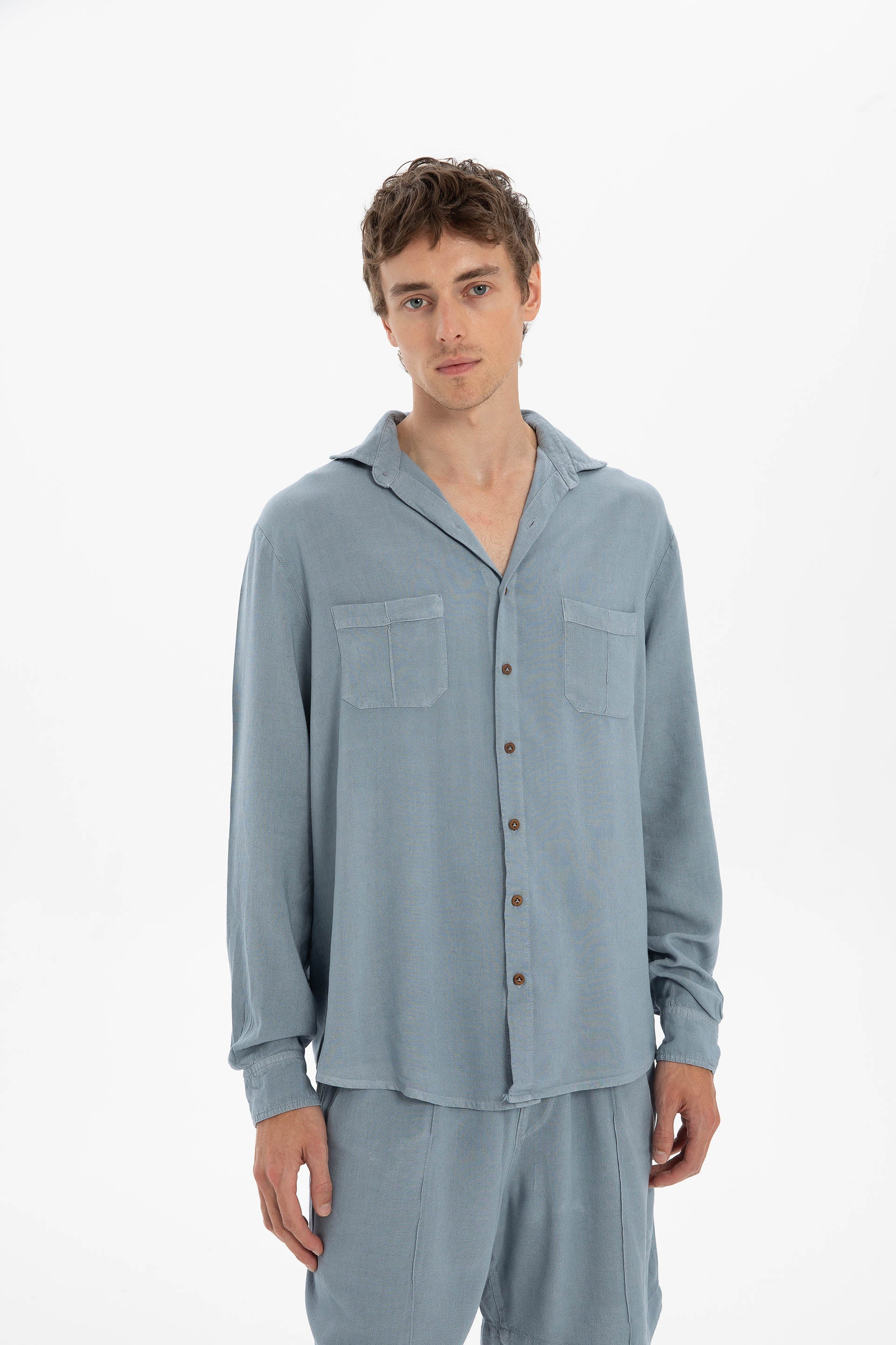 This classic men's shirt, distinguished by its flowing structure, natural texture, and simple elegance, offers a lightweight and breathable fit thanks to its fluid viscose-linen blend fabric. Its classic collar and natural button-down design give this model a timeless look, while its dual front pockets strike a powerful balance between functionality and style. Long cuffed sleeves and back seams reflect meticulous attention to detail, while special dyeing and washing processes give each piece a unique texture and color. With its color options, it's poised to become a wardrobe essential.