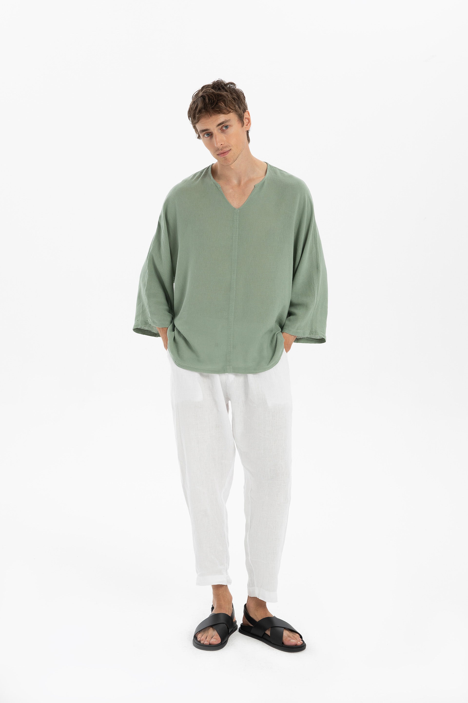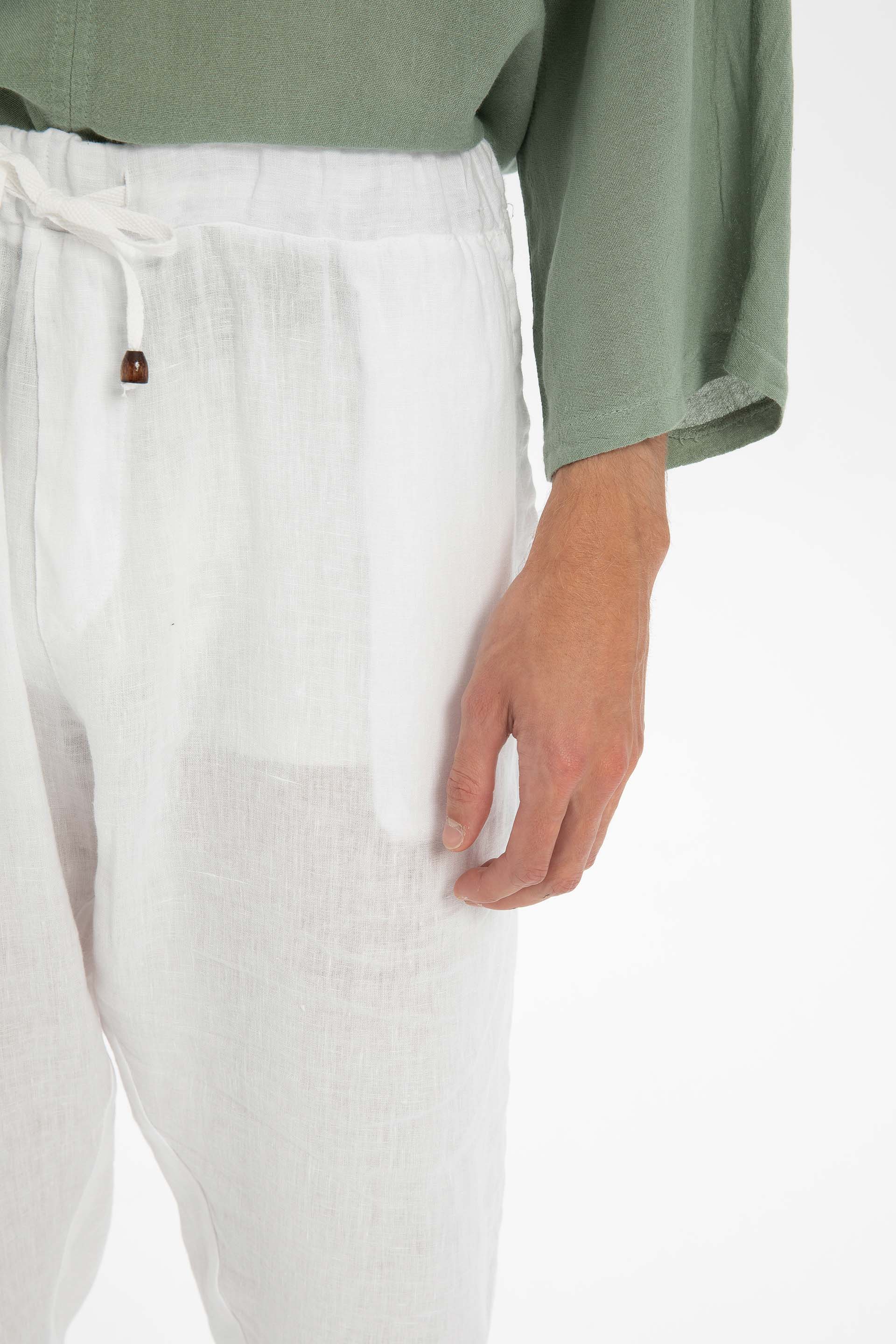 The timeless comfort of natural linen is revitalized in these special men's trousers, embodying the dynamic lines of a modern design. This Ipekci Otantik piece, reflecting the perfect balance between comfort and style, offers all-day freshness thanks to the breathable and cool texture of 100% pure linen. Its loose cut allows for free movement, while the elasticated waistband and adjustable lace-up design provide a personalized fit. Elegant beaded details at the lace ends add a touch of sophistication. The special stonewash effect gives the trousers a unique, vibrant character and a modern look.
