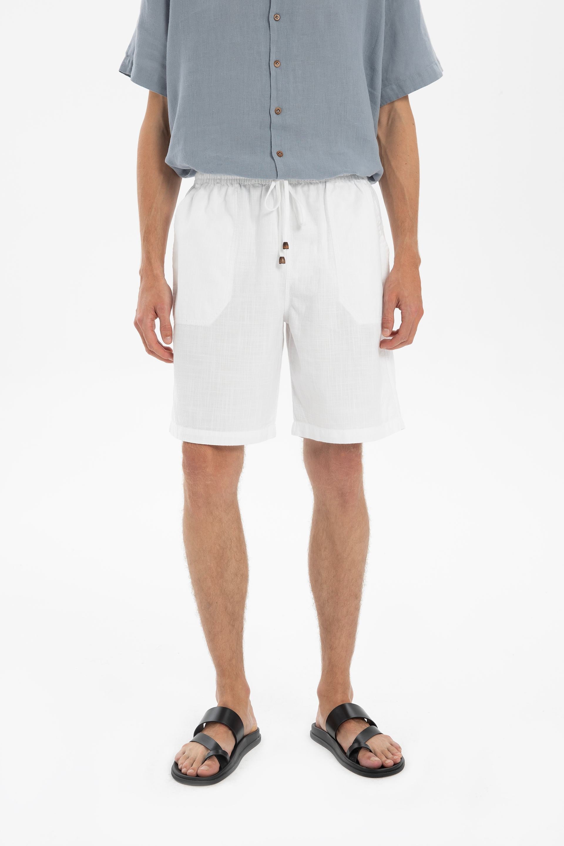 A piece to accompany the energy of sunny days and the lightness that summer brings... The breathable and cool nature of 100% cotton woven fabric comes to life in these jogger shorts, providing all-day comfort. Reflecting Ipekci Otantik's dynamic and comfortable approach to style, this design adds a modern touch to your daily routine with its sporty stance. The elastic waistband and adjustable drawstring detail ensure a personalized fit, while the side stitched pockets offer both a stylish look and functionality.