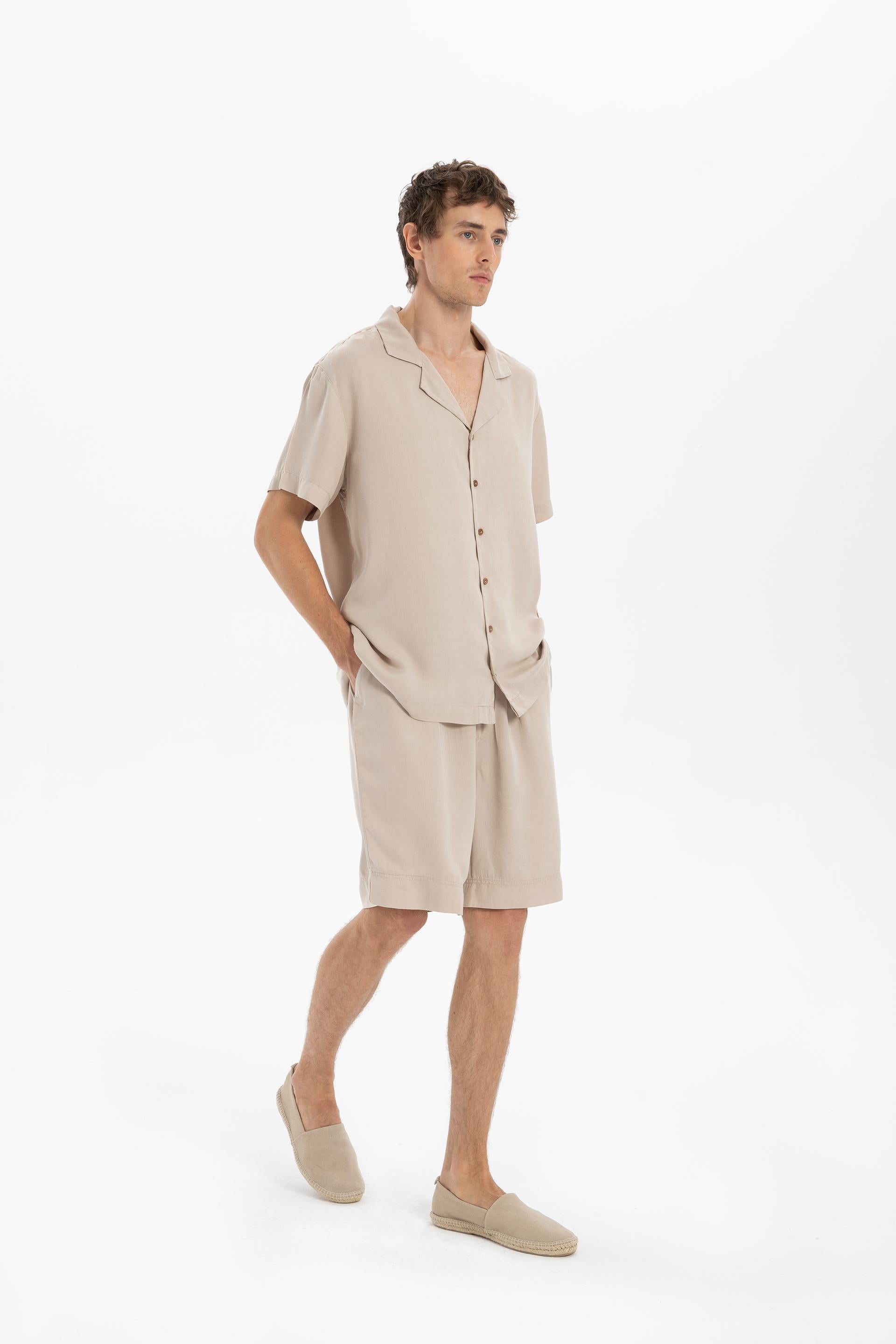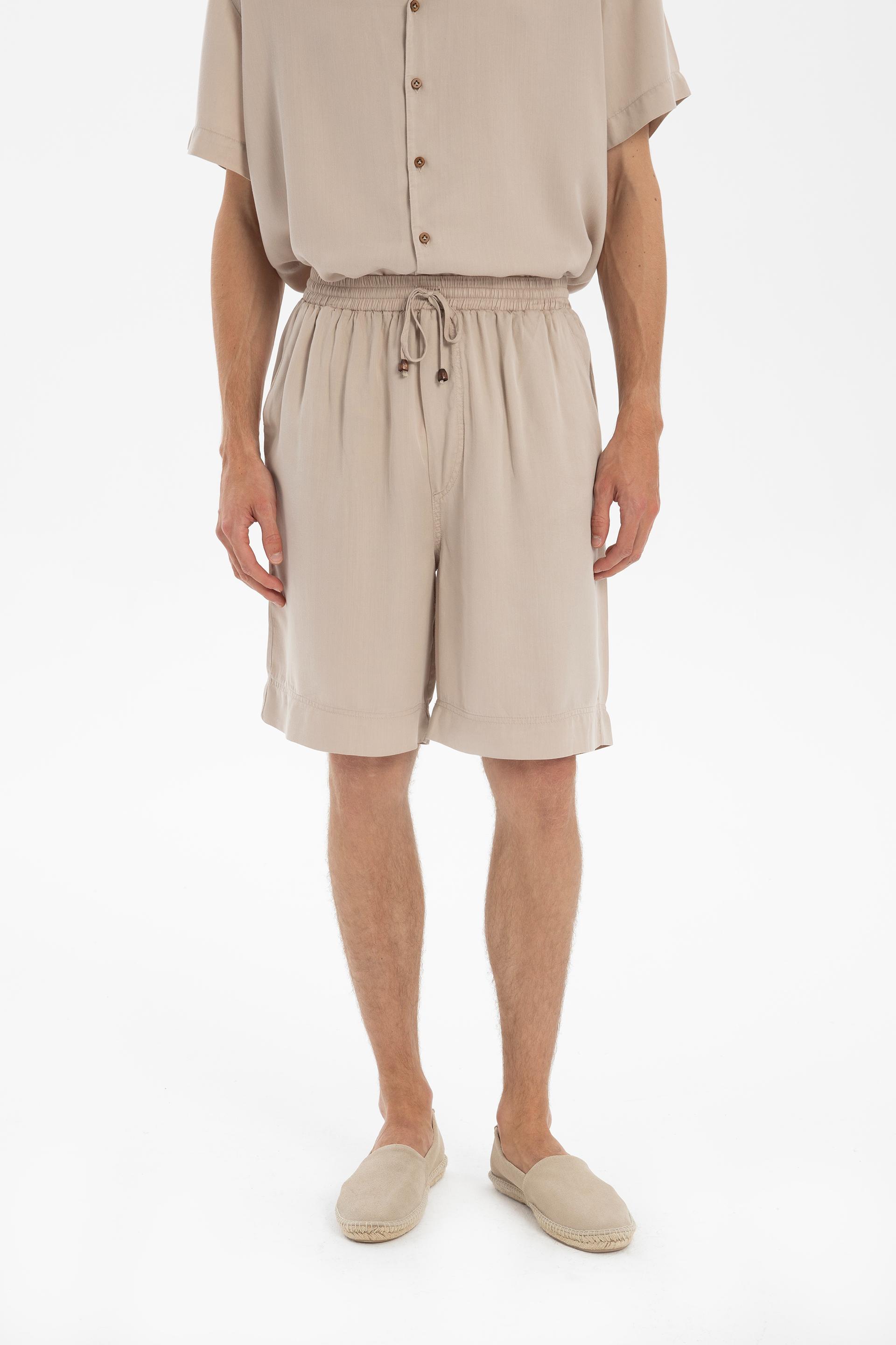 These men's shorts, representing Ipekci Otantik's modern understanding of comfort and conscious style, offer unparalleled comfort all day long with the breathable, lightweight, and silky texture of Tensel fabric. Their relaxed fit and flowing structure allow for natural fluidity and freedom in every movement, while the elastic waistband and adjustable drawstrings promise a personalized fit.