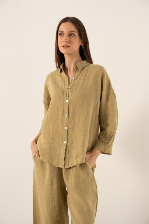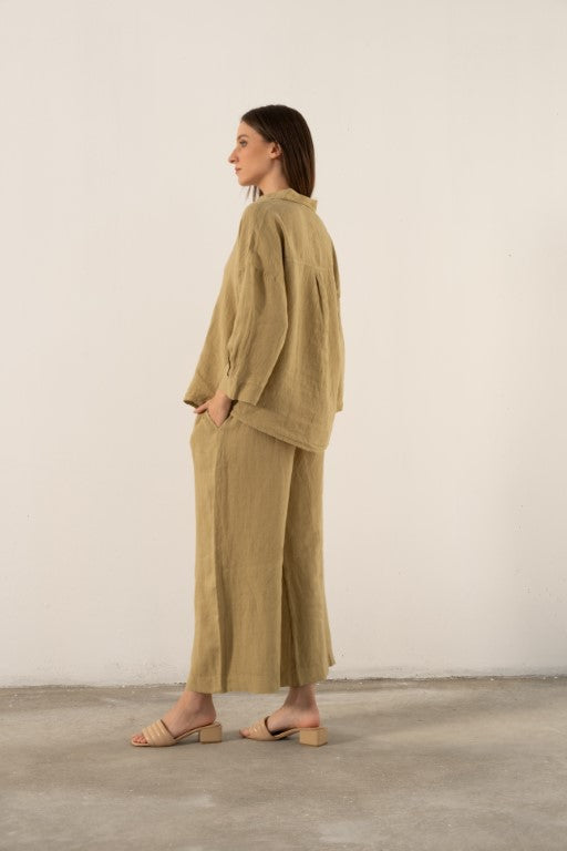 Enjoy warm days with the refreshing touch of nature. The durable, breathable, and cool texture of 100% pure linen, which meets your skin, offers unparalleled comfort. Designed with Ipekci Otantik's understanding of timeless elegance and comfort, these palazzo trousers, with their fluid drape and wide legs, let you express your style with every step. The unique color tones achieved through special piece dyeing and washing processes, along with the softened natural texture of the linen, make these trousers a unique and essential part of your wardrobe. Immerse yourself in the free flow of this nature-inspired, comfortable, and elegant design.
